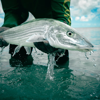 Two anglers typically set out with their guide aboard 16 foot Dolphin skiffs. Most of the fishing is accomplished from the boat although some wading is possible. Anglers take turns sight fishing to bonefish in shallow water from the bow with floating lines.