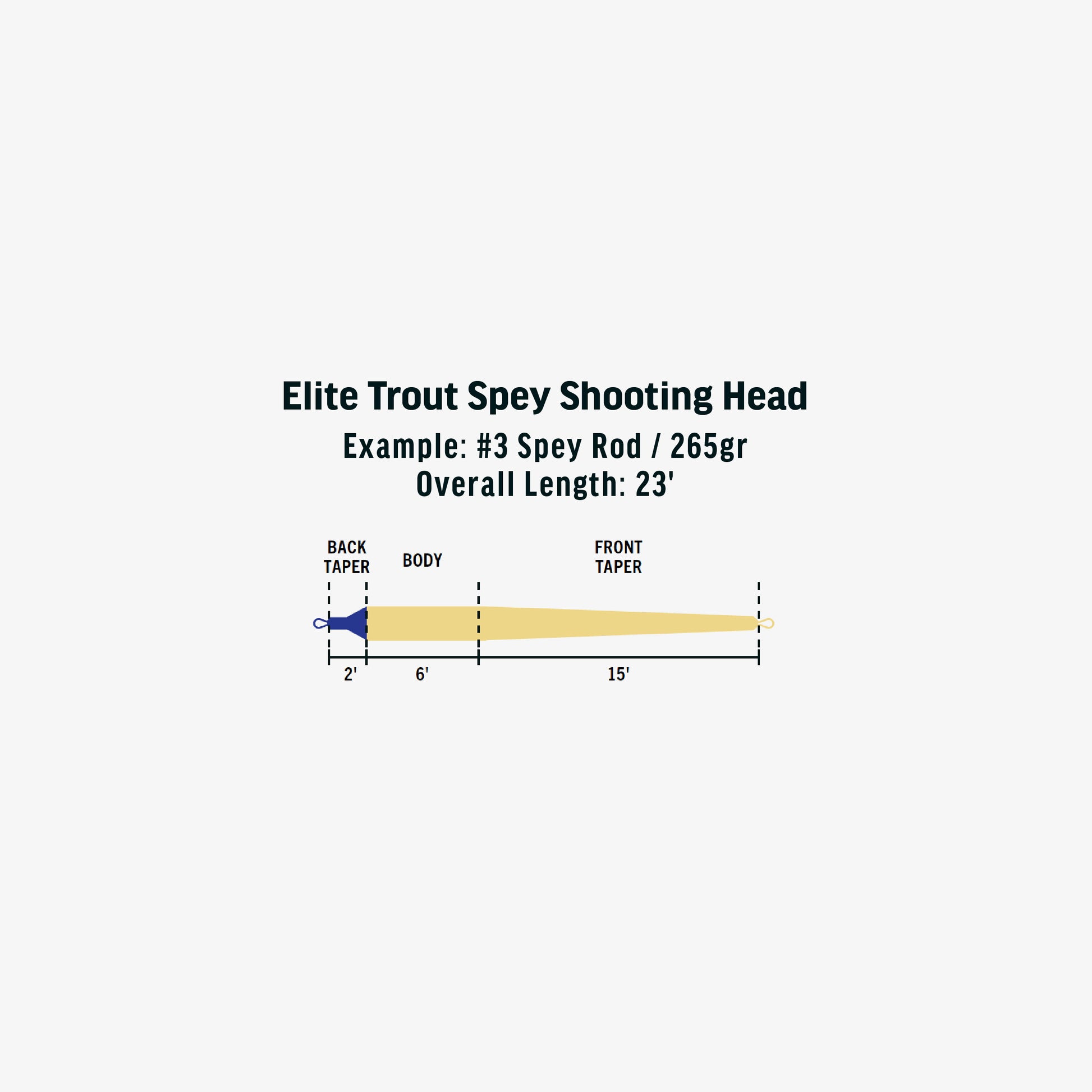 The Elite Trout Spey Shooting Head has a very easy casting, short head for anglers using light two-handed trout Spey rods, and regular single-handed fly rods (just check the grain weight to match).